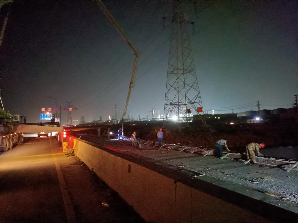 在徐圩新区江苏大道交通安全管控项目现场,工人们正在加班加点进行桥面铺装和栏杆安装等收尾工作,国庆不休假,争取提前完成施工任务。本项目工程总造价1.14亿元,工期10个月,自今年1月中旬进场开建以来,在全体项目员工的共同努力下,道路主体工程已于6月底完成,桥梁主体工程也于9月底完成,剩余收尾工作将于十月上旬全部竣工。
