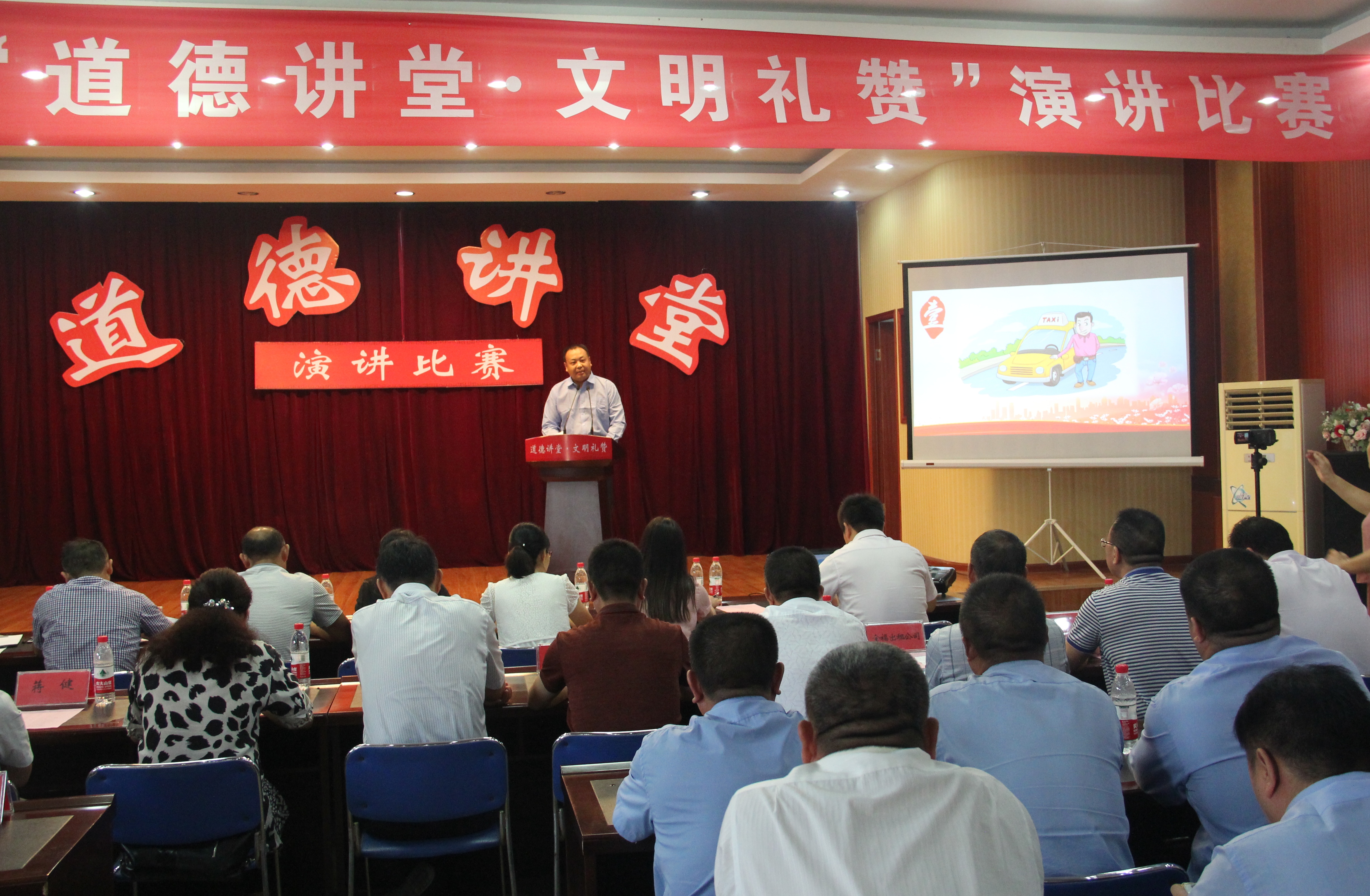 为弘扬中华民族传统美德,传递文明新风,提升职工文明素养和社会文明程度,进一步扩大道德讲堂影响力,大力宣传道德模范、身边好人感人事迹,引导广大干部职工崇德向善、见贤思齐,形成学好人、做好人的社会风尚,以实际行动助力港城创建全国文明城市,8月18日上午8点,海通汽服公司“道德讲堂 文明礼赞”演讲比赛正式拉开帷幕,公司领导班子、各权属单位及处室相关领导、出租车驾驶员代表、职工代表共90余人齐聚连汽出租公司会议室参加活动。汽服公司党委书记孙克勤出席会议并致开幕词。
