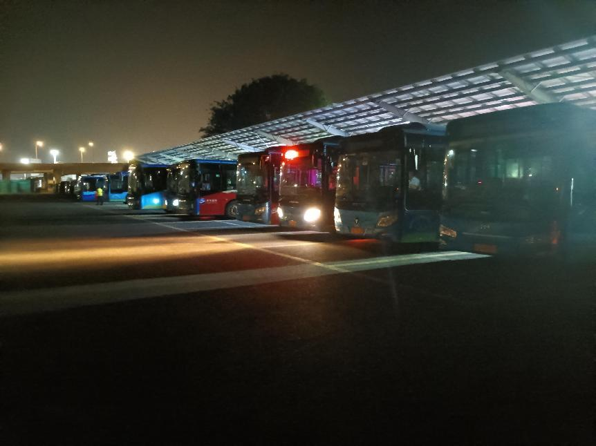 面对增加的充电压力,明茂公司东部充电班组全员严阵以待。值班人员彻夜值守岗位,密切关注每台车辆的充电进程,确保电池电量充足。当城市渐入沉睡,充电站内依旧灯火通明,充电人员仍在忙碌穿梭,耐心等候每一班公交车完成充电。直至凌晨两三点,当完成所有车辆保障任务后,他们才拖着疲惫的身躯离开工作岗位。