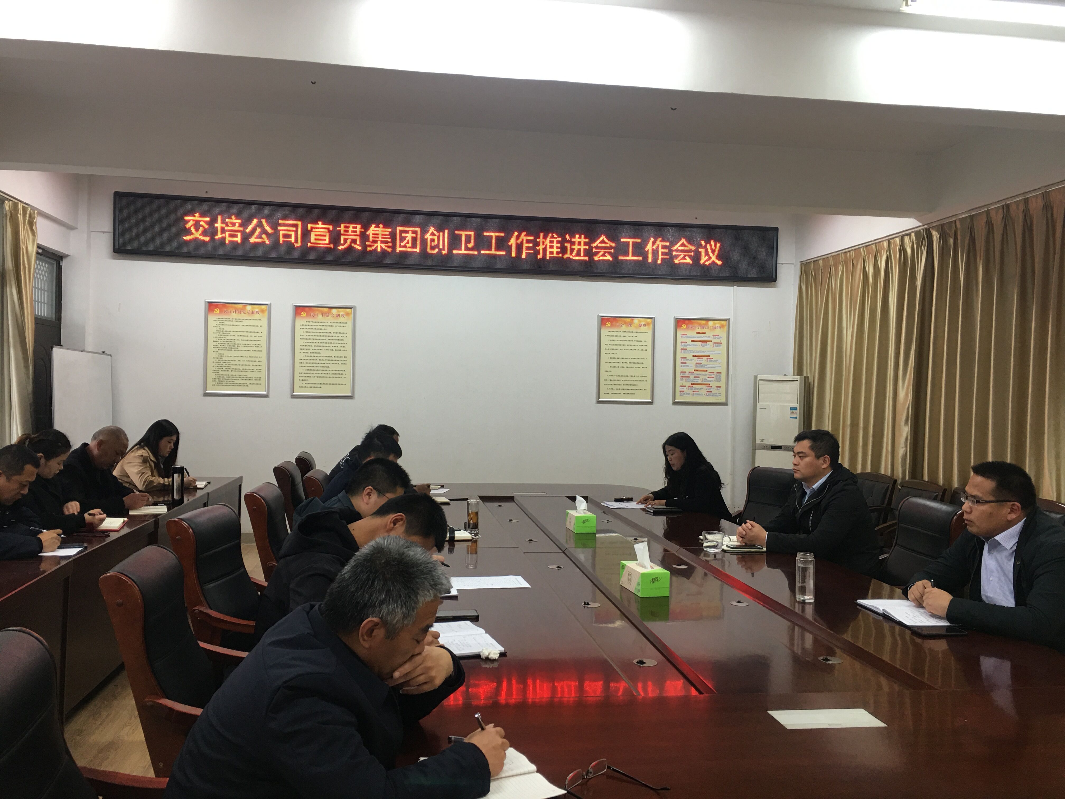 4月2日下午,交培公司召开传达集团迎接国家卫生城市复审工作推进会,会议传达了集团创卫复审工作推进会精神,公司领导、中层干部参加会议。
