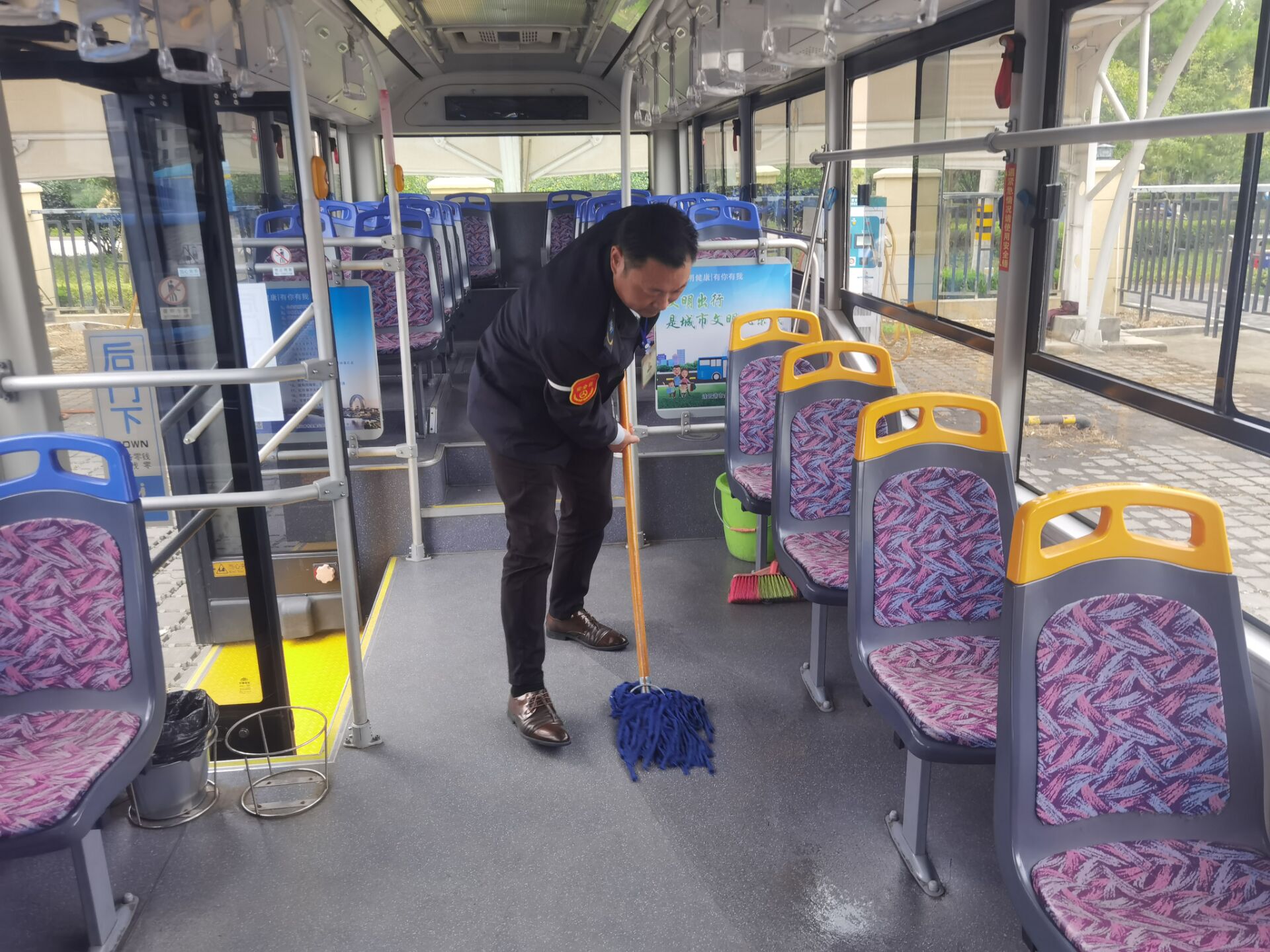 101日早上5点多,603路驾驶员樊耀声就已经来到公司,检查过车辆安全后,打上一瓶消毒液,把车厢内仔细消杀了一遍,打开了车里所有的窗户,再用抹布把车厢座椅及扶手抹上一遍。等一切工序做完后,樊耀声利用最后一点时间,急忙把从家里带来的煎饼啃上几口,便驱车驶入602路发车区,开始了一天忙碌的工作。当问到樊耀声,“别人放假了,休息了,陪着孩子出去玩了,您心里难受吗”?樊耀声摇摇头道:“假日里的公交车不能没有人开,市民的安全出行需要有人来保障,祖国的繁荣富强,百姓的安居乐业,需要我们公交人的坚守,才能让更多的市民过上一个祥和的节日,孩子会理解的。”