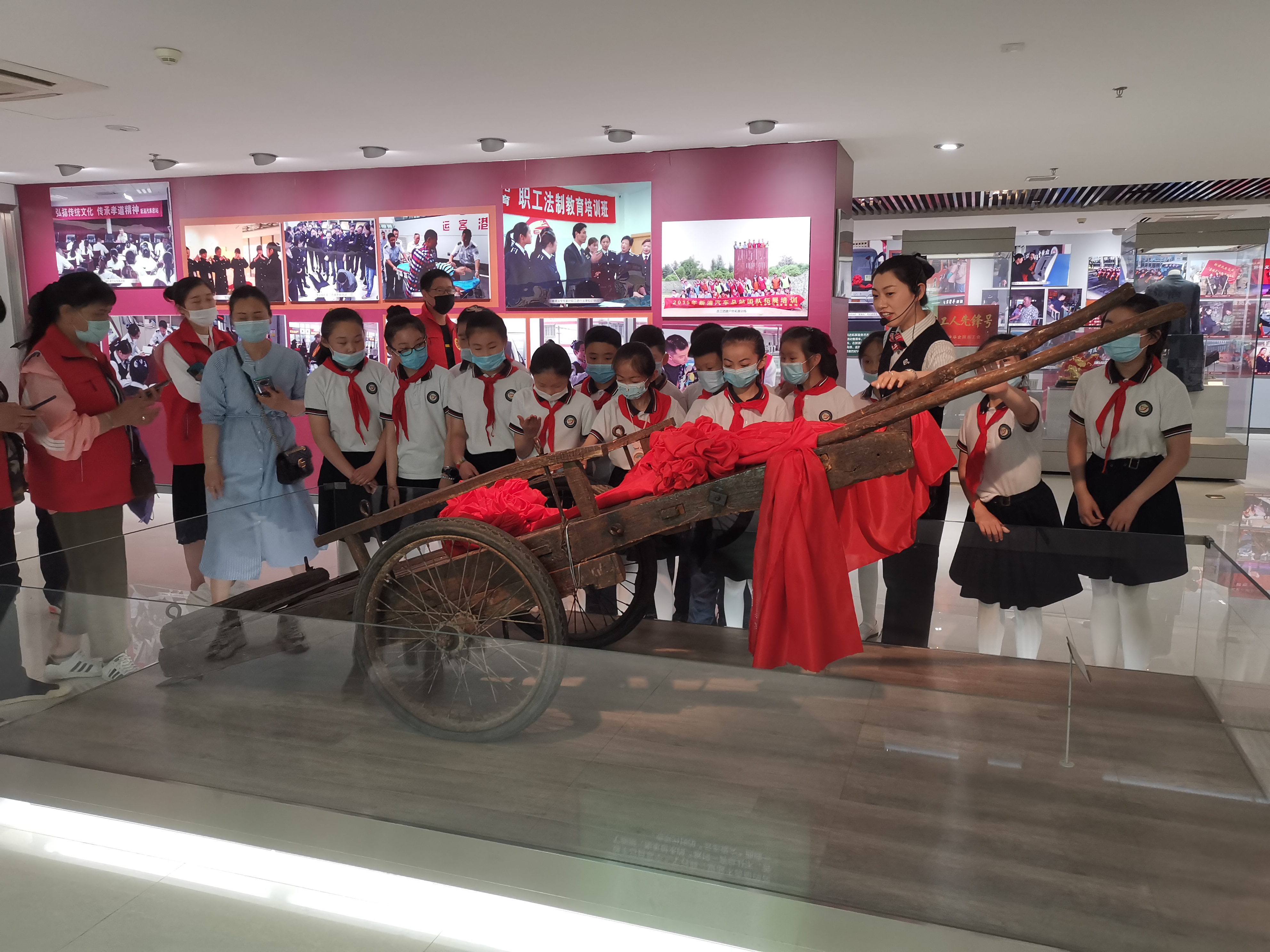 跟随着讲解员李雨轩的步伐,郁州分校的小学生们走进了雷锋车风风雨雨几十年的历史“长河”。他们认真聆听雷锋车手的感人事迹,观看图片、历史实物等了解雷锋车的更迭发展。当讲解员说到起初雷锋车手们使用的平板车时,小学生们格外好奇,他们中的大部分从未见过平板车,纷纷凑到车前观察,感叹雷锋车手的艰辛,喊起了“向雷锋车手阿姨学习”的响亮口号。