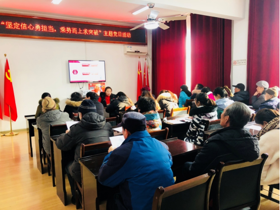 2019年1月21日,交培公司机关党支部的党员同志与星化社区的党员同志们,共同开展“坚定信心勇担当,乘势而上求突破”主题党日活动。活动中,大家共同学习了“中共市委十二届七次全会解读”、“中共市委‘两会’精神解读”、“2019市人民政府工作报告”、“市党员干部应知应会100条”。