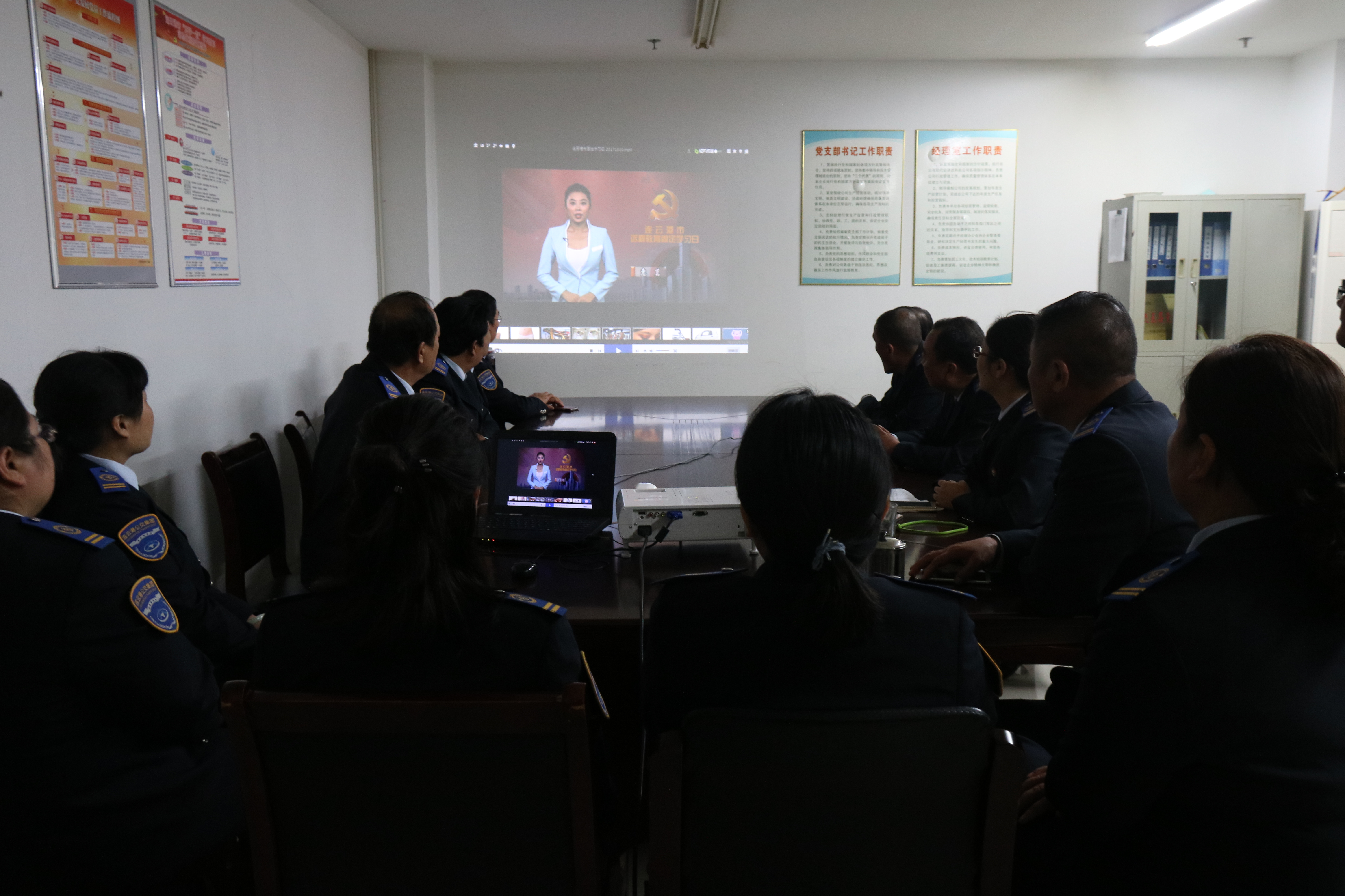 佳连公司党支部组织广大党员干部观看专题片。