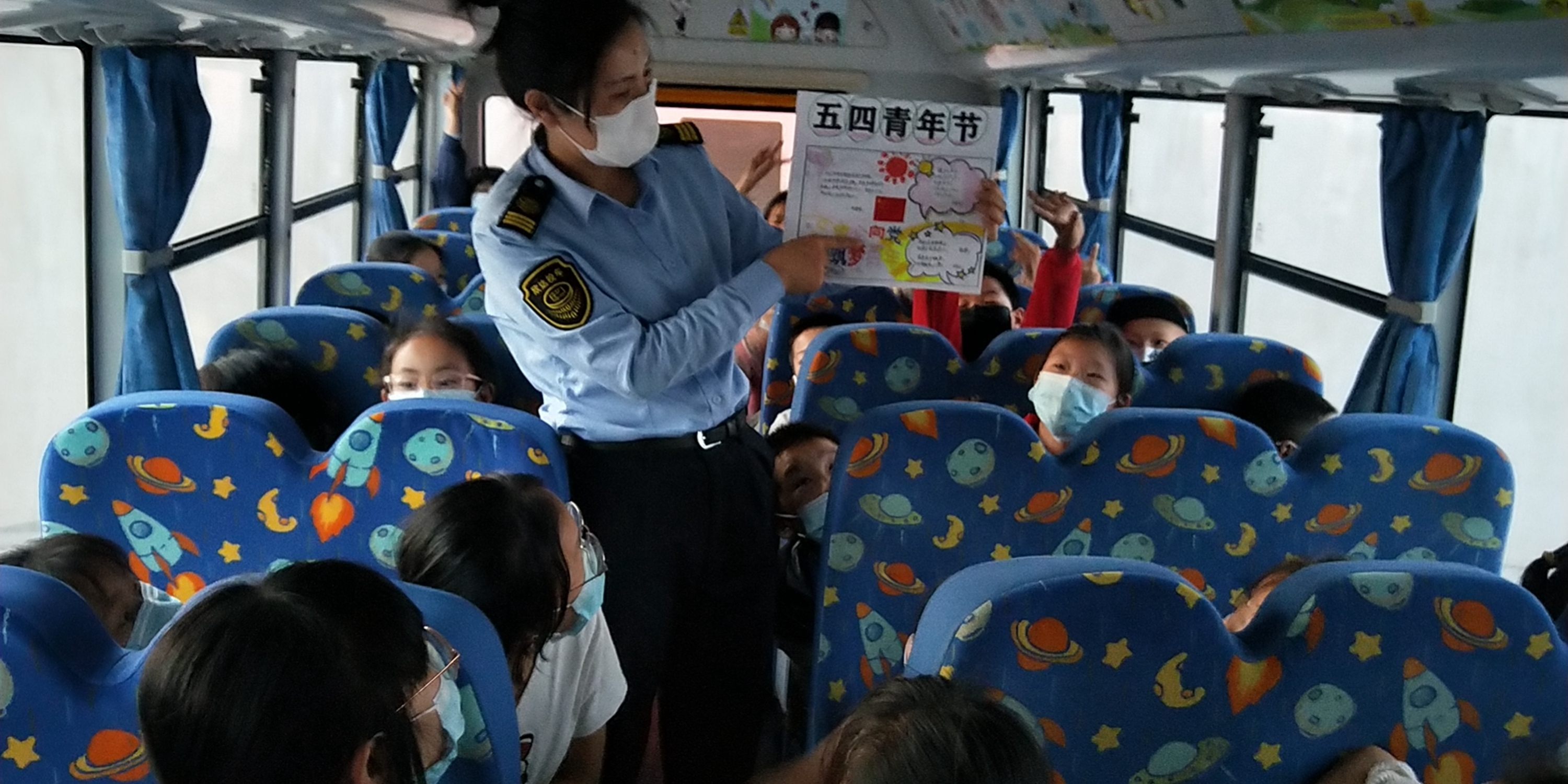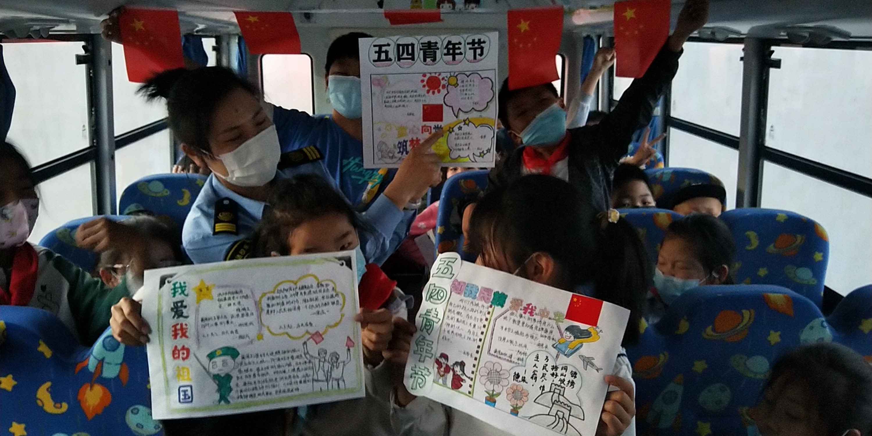 为培育乘车学生们爱国、爱党、爱团的坚定信念,引导他们增强历史责任感和时代使命感,在五四青年节当天,连汽灌云欣达校车开展了“弘扬五四精神 凝聚青春力量”主题流动课堂。