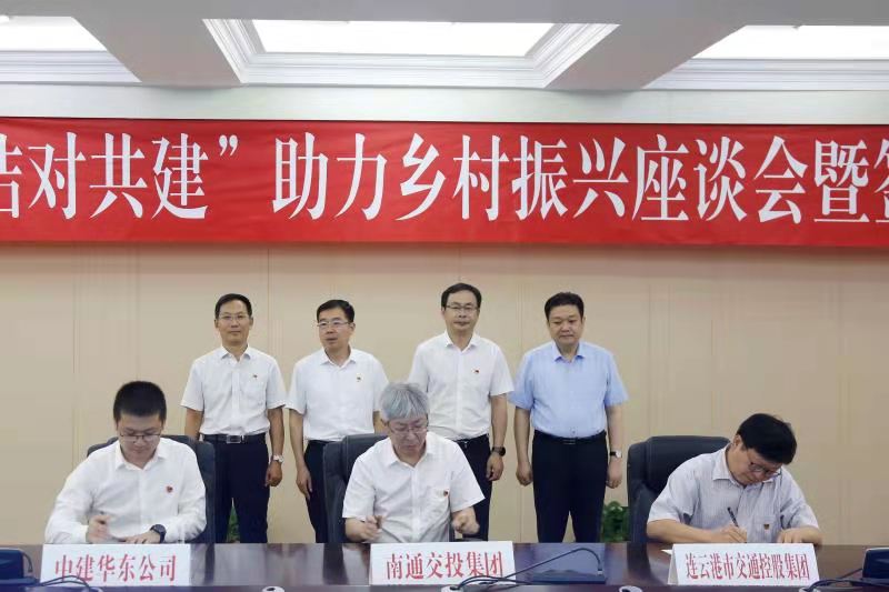 为深入推进党史学习教育,打造为民办实事新载体,7月19日,连云港市交通控股集团党委、南通交通建设投资集团党委和中建华东公司党委开展“党建引领共走振兴路,深入乡村为民办实事”结对共建活动。