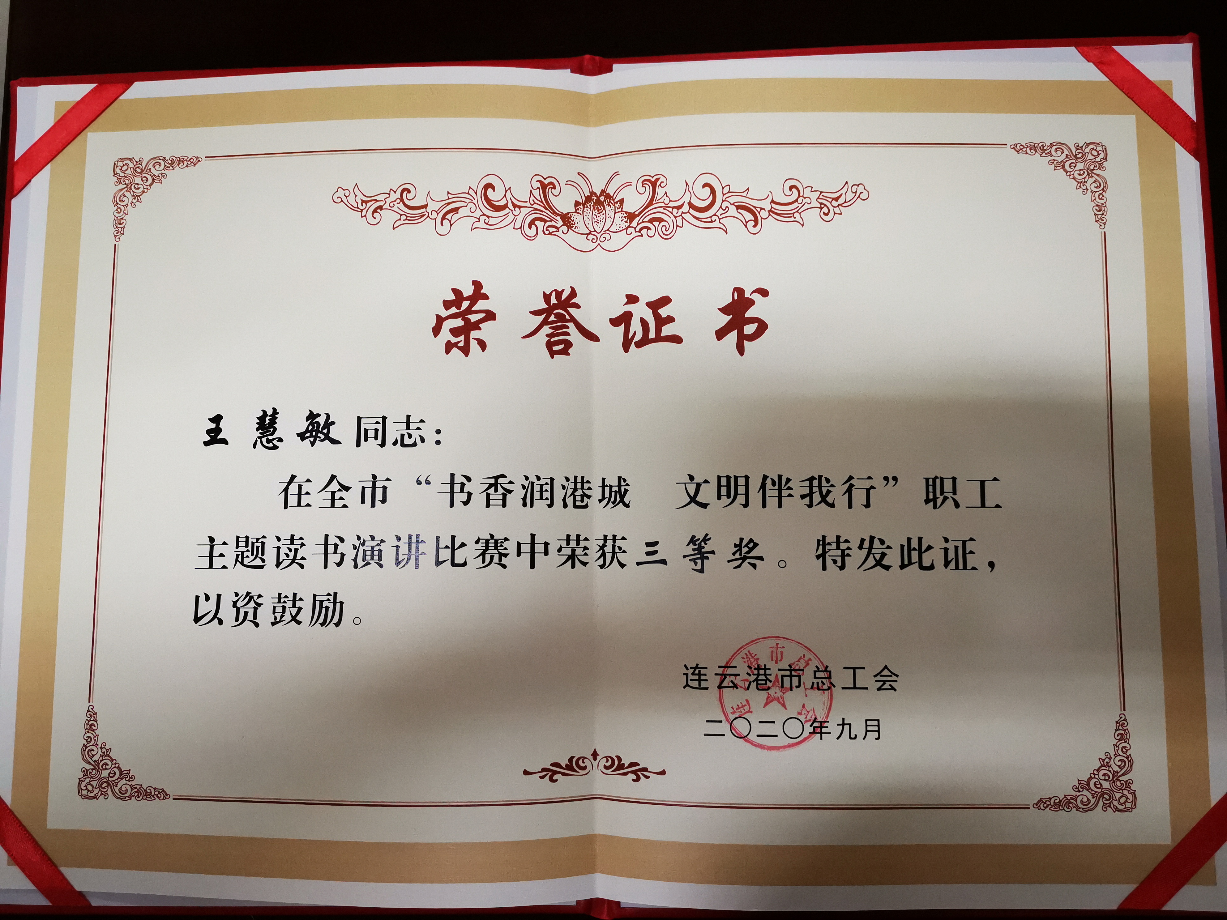 近日,市总工会举办“书香润港城 文明伴我行”职工主题读书演讲比赛,来自全市各县区、各单位工会推荐的54名选手参加了此次比赛。比赛采取文稿征集、现场演讲的方式,经过激烈角逐,集团权属企业汽车公司张宇荣获二等奖;交培公司王慧敏荣获三等奖,左亮亮荣获优秀奖。